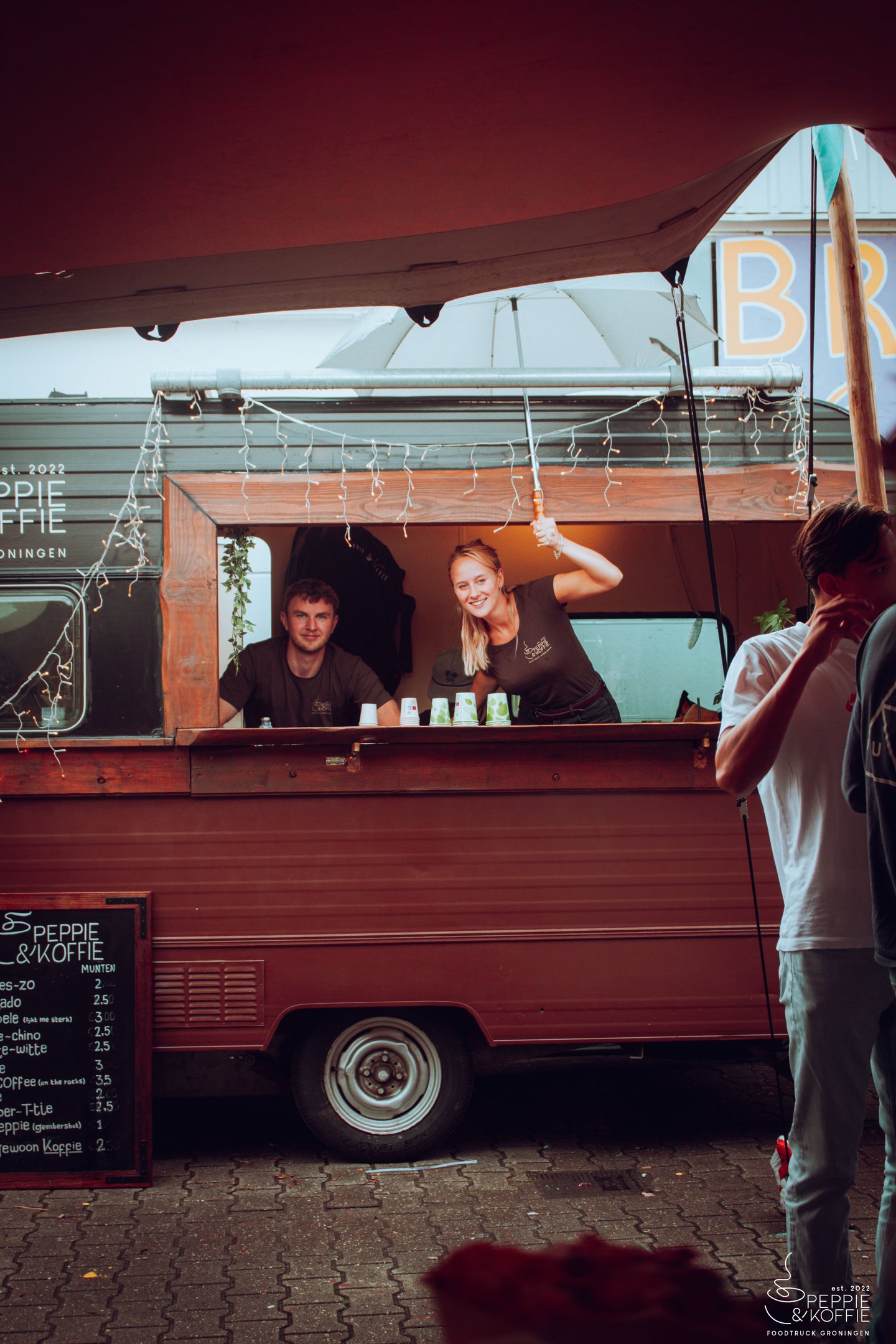 Wij zijn Mark & Marleen, het duo achter Peppie & Koffie, de retro koffiefoodtruck. Onze koffiebonen komen rechtstreeks uit Groningen van Sama Stads Koffiebranderij. Daarnaast bakken we heerlijke lekkernijen, zoals zandkoekjes, versgebakken wafels en verrassende chocoladekoekjes (volgens moeders recept). Ook voor soepen en andere catering kun je bij ons terecht, volledig op maat voor jouw evenement!