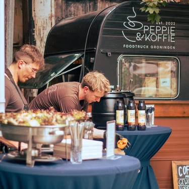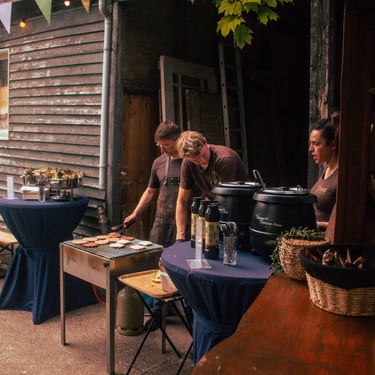 We verzorgden de catering voor een foodtruckfeest met 150 gasten op een prachtige locatie. Op het menu stonden pastasalades, frisse soepen, BBQ-burgers en natuurlijk onze verse koffie en wafels ☕️🧇. Bekijk de foto’s en kijk terug op een geslaagde dag.
